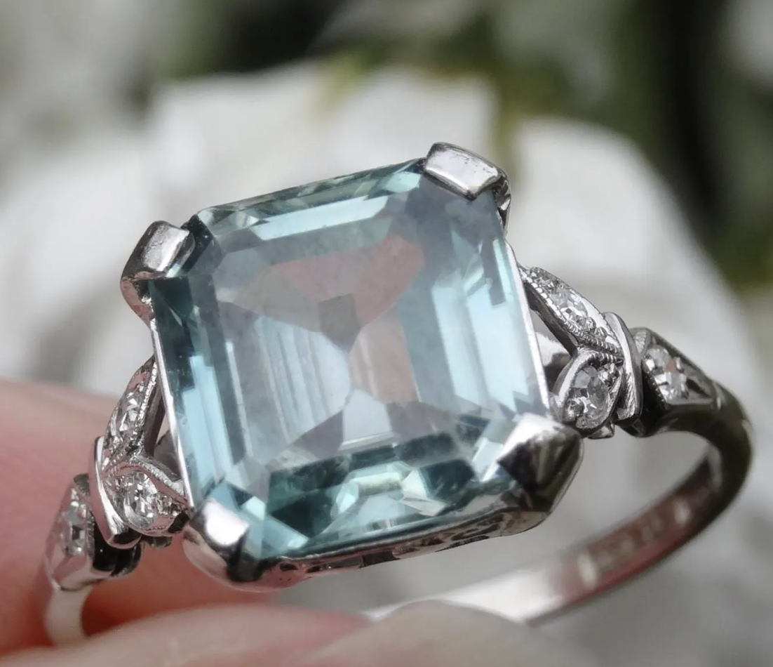 An image of an Art Deco blue zircon ring. This ring and others available to purchase here.