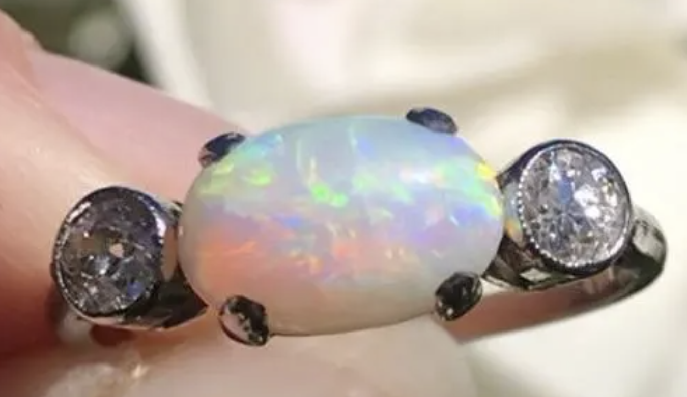 This antique Australian white opal with a pinfire pattern is one of the beautiful rings available at decoration jewellery